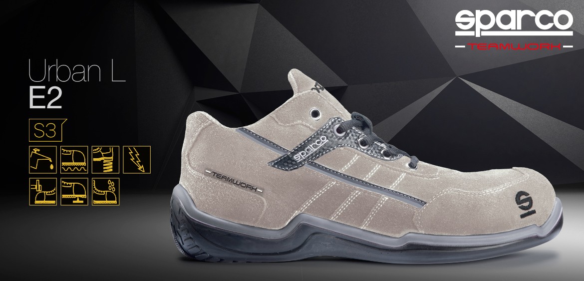 Chaussure en daim basse avec protection S3 conçue pour un usage quotidien. Inserts réfléchissants et présentant l’aspect du carbone.